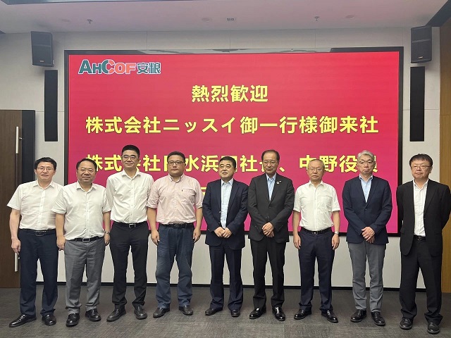 7月1日,海螺集團(tuán)副總經(jīng)理王建超、安徽國(guó)貿(mào)董事長(zhǎng)何傳友、常務(wù)副總經(jīng)理陶軍、安糧集團(tuán)董事長(zhǎng)吳國(guó)杰、總裁楊曉剛熱情接待了日水浜田社長(zhǎng)一行,并在安糧中心32樓召開(kāi)座談會(huì)。會(huì)上,王建超首先對(duì)日水社長(zhǎng)一行的來(lái)訪表示歡迎。王建超表示日水是安糧的重要客戶,為安糧對(duì)日貿(mào)易的發(fā)展做出了積極貢獻(xiàn),希望能繼續(xù)強(qiáng)化合作,充分發(fā)揮日水種植、養(yǎng)殖和產(chǎn)品研發(fā)技術(shù)優(yōu)勢(shì),立足國(guó)內(nèi)市場(chǎng),加工適銷對(duì)路的產(chǎn)品,國(guó)內(nèi)國(guó)際兩個(gè)市場(chǎng)一起抓。同時(shí)希望能夠借鑒日水預(yù)制食品行業(yè)的先進(jìn)經(jīng)驗(yàn),重點(diǎn)拓展國(guó)內(nèi)預(yù)制菜市場(chǎng)。浜田社長(zhǎng)表示日水和安糧的合作已有38年歷史,安糧也是日水進(jìn)軍中國(guó)市場(chǎng)后合作的第一批企業(yè),日水對(duì)海螺集團(tuán)、安徽國(guó)貿(mào)的企業(yè)實(shí)力和行業(yè)影響力十分贊賞,對(duì)安糧產(chǎn)品的品質(zhì)十分信任。浜田社長(zhǎng)重點(diǎn)指出安糧新產(chǎn)品——調(diào)理南瓜產(chǎn)品在日本市場(chǎng)十分暢銷,希望日水研發(fā)團(tuán)隊(duì)和安糧工廠共同開(kāi)發(fā)更多的調(diào)理蔬菜產(chǎn)品。